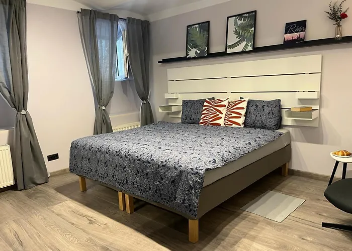 - ❓Quais são os bons restaurantes não muito longe deste apartamento?Os hóspedes podem optar por jantar em Vieta wine bar, o bar de vinhos que oferece pratos de cozinha Deli dentro de 100 metros deste apartamento. Alternativamente, eles podem saborear pratos de cozinha Japanse em Fudzijama, convenientemente situado a 5 minutos a pé.
